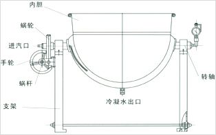 可傾反應(yīng)鍋可蒸、煮、浸提、濃縮中藥,也可用于制作蜜丸中的煉蜜??蓛A反應(yīng)鍋由主體、支架、蝸輪、蝸桿等組成。夾層通入蒸汽加熱,或者使用電加熱。 中藥濃縮機(jī)技術(shù)構(gòu)造: