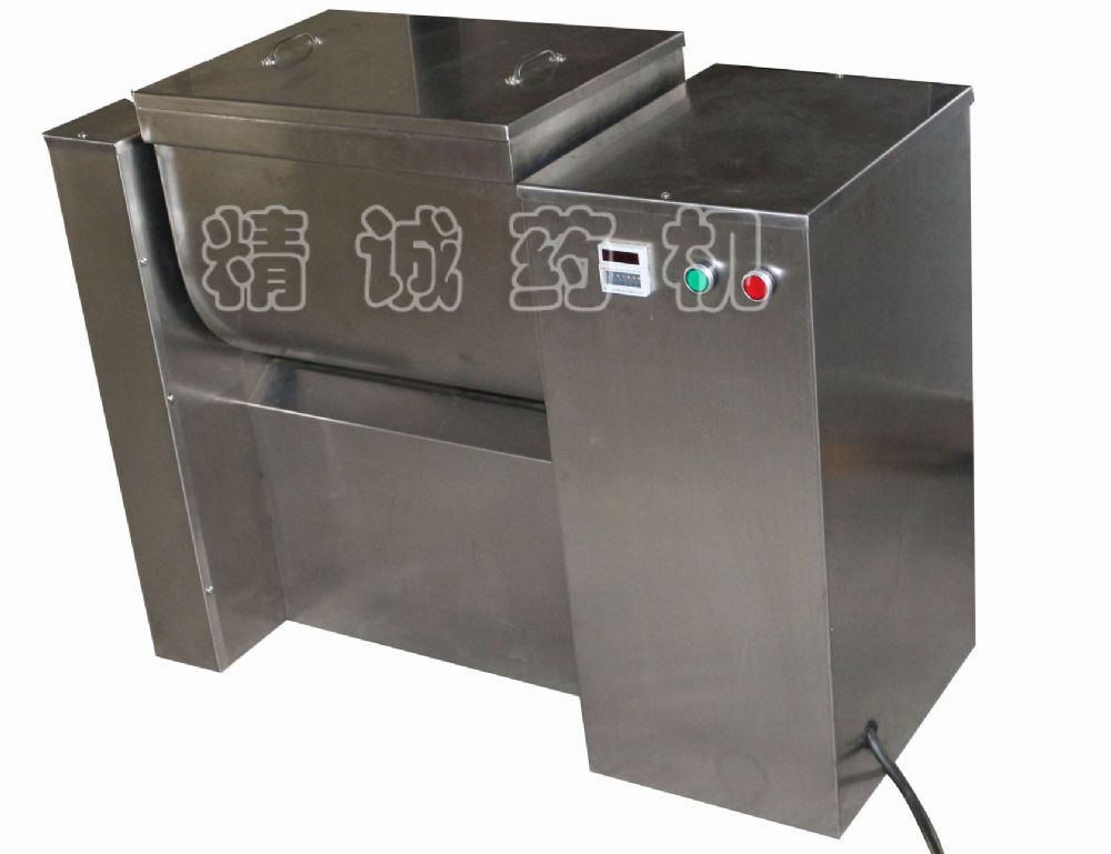 槽型混合機(jī)通過機(jī)械傳動,使S式攪拌漿旋轉(zhuǎn),推動物料往復(fù)翻動,均勻混合,槽型混合機(jī)操作時采用電氣控制,可設(shè)定混合時間,到時自動停機(jī),從而提高每批物料的混合質(zhì)量。