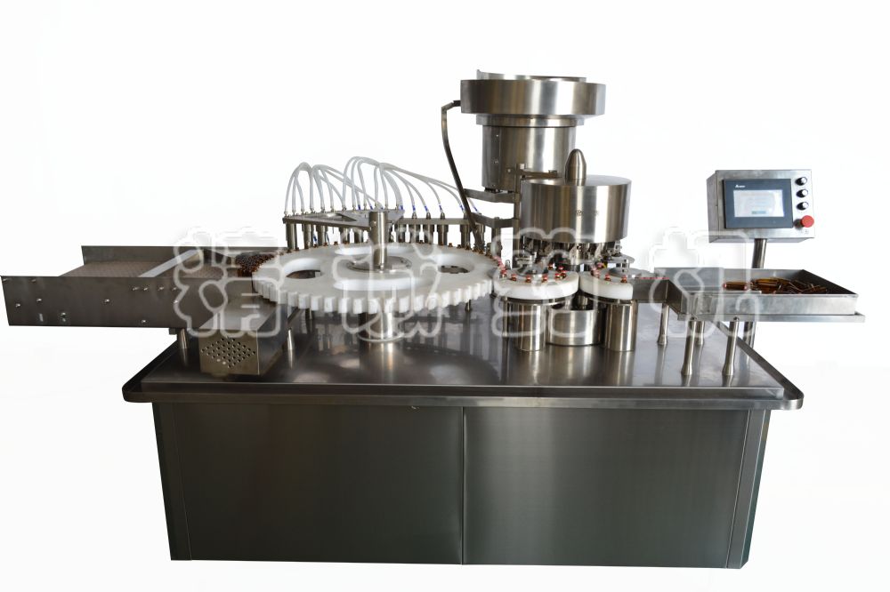 本機(jī)是灌裝、軋蓋二機(jī)合一的高速灌封機(jī),適用于各種10ml~30ml玻璃瓶的液體灌裝和軋蓋。機(jī)器采用潛入式灌裝機(jī)構(gòu),灌裝時,灌裝頭自動伸入瓶內(nèi),液體無溢出;機(jī)器采用高精度計(jì)量機(jī)構(gòu),不銹鋼單向閥門,灌裝計(jì)量調(diào)整方便;組合式灌裝管路及灌裝組件,拆卸、消毒十分方便;根據(jù)不同的蓋子,軋蓋力大小可以調(diào)整,保證瓶蓋外觀封口美觀;采用變頻調(diào)整系統(tǒng),能方便地適應(yīng)各種不同規(guī)格的瓶子及不同粘度液體灌裝的不同需求。